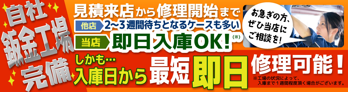 バンパー修理以外でも、最短当日のお引き渡しが可能です。